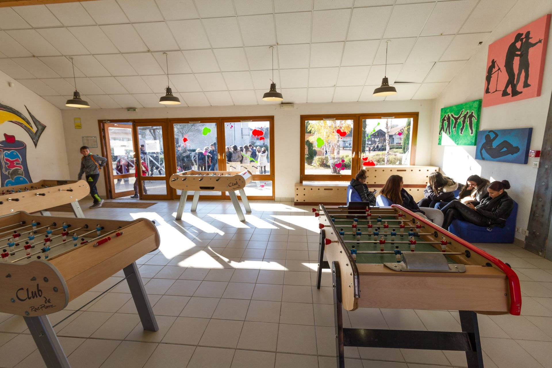 - au foyer (baby-foot, jeux de cartes, jeux de société, table de ping-pong...),
