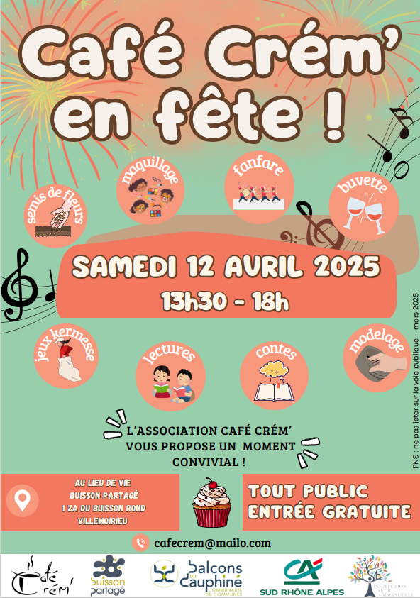Ce samedi 12 Avril, les étudiants BTSa DATR 2ème année ont eu le plaisir de vivre l’événement « Café Crém’ en fête » aux côtés des bénévoles de l’association. Cette manifestation coorganisée, avait pour objectif de célébrer son premier anniversaire au lieu de vie « Le Buisson Partagé » situé à Villemoirieu, lieu dans lequel l’association propose depuis un an des activités variées.