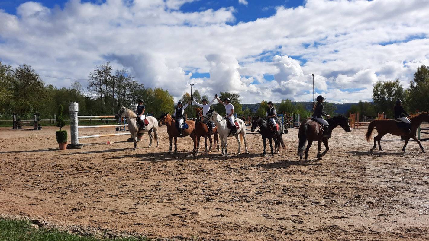 Ce fut une belle journée pour les lycéens de l'option équitation du lycée général de notre ensemble scolaire. Accompagnés de leur directrice, Nathalie Van Troys, et de leur coach Antoine Bourdon, ils ont brillé lors du concours de ce dimanche 2 octobre au Poney Club de Passieu. Un beau spectacle, des résultats, de la convivialité et une ambiance d'équipe au top. Bravo et merci à eux ! Les résultats de nos lycéens du lycée général : Club 4 (10 participants) 5ème Lina Boudjemline (1ère G2) Club 3 (22 participants) 2ème Lisa Merlin (1ère G3) 3ème Anaïs Vichery (1ère G1) 5ème Isaïs Nicod (1ère G3) 6ème Camille Van Troys (2nde G3) 9ème Tibor Holl (1ère G2) Club 2 1ère Lisa Merlin (1ère G3) 2ème Anaïs Vichery (1ère G1) 6ème Camille Van Troys (2nde G3) 11ème Isaïs Nicod (1ère G3)