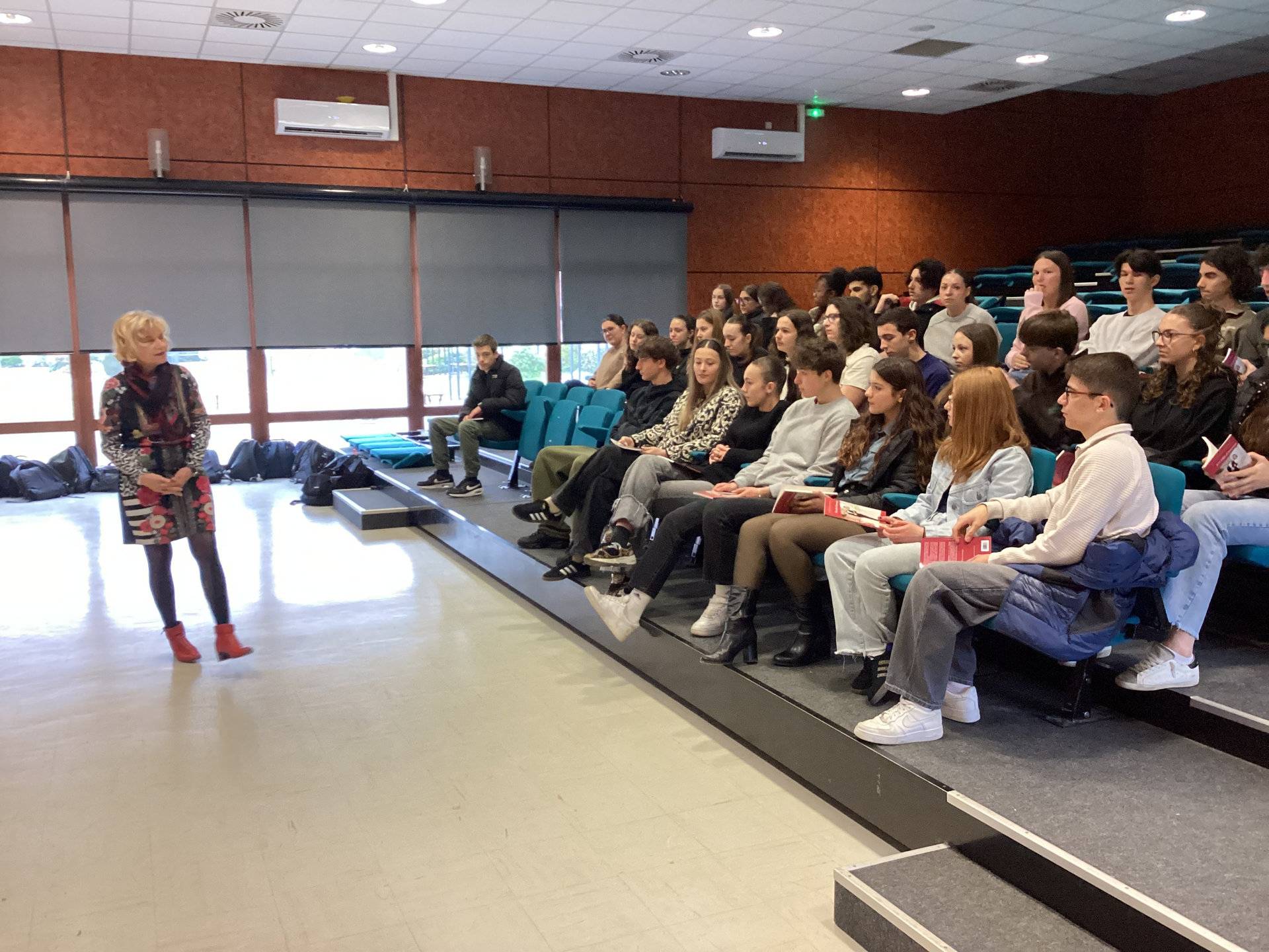 Activités : Entretien avec une autrice/comédienne, activités d'expression théâtrale et dédicace de sa pièce étudiée dans le cadre du programme du bac de français.